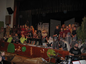 Árshátíðin í ár var uppfærsla nemenda á Ronju ræningjadóttur. Sýnt var fyrir fullu húsi á föstudag kl. 20 og þá með hljómsveit sem Stefán Þorleifsson tónmenntakennari okkar setti saman með nemendum úr Tónsmiðjunni og Tónlistarskóla Árnesinga. Hljómsveitin bar nafnið bófabandið í daglegu tali og var skipuð Stefáni sjálfum sem var tónlistarstjóri og útsetti fyrir hljómsveitina. Á trommur var Fannar Freyr Magnússon, Eyþór Stefánsson var á bassa, Eyþór Ingi Eyþórsson á gítar og Jóhanna Höeg á þverflautu og saxófón. Með hljómsveitinni fór sýningin á kraftmeira plan og nemendur sungu fullum hálsi. Leikur nemenda var líka einstakur og var ótrúlegt að fylgjast með hversu vel þeir héldu sig í hlutverkum allan tímann. Þetta var frábær sýning. Nú í dag komu svo nemendur í 1.-7. bekk í Flúðaskóla til að sjá sýninguna. Þá var stuðst við tónlist af diski sem var æfingadiskur fyrir árshátíð. Sú sýning gekk mjög vel og var mikið þrekvirki fyrir nemendur að leika og syngja fyrir jafnaldra sína úr öðrum skóla. Til hamingju krakkar.